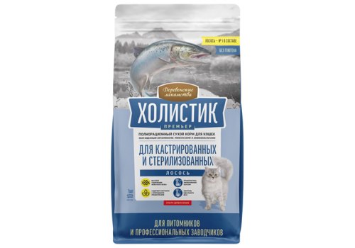 Деревенские лакомства Холистик Премьер Сухой корм для Кастрированных и Стерилизованных кошек Лосось 10 кг