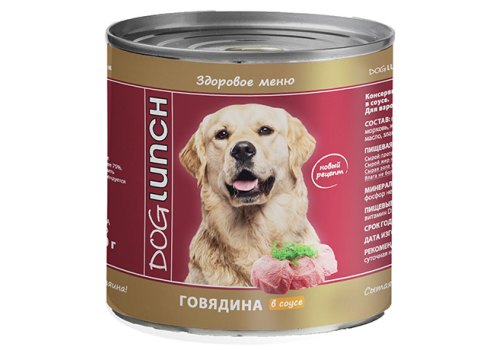 Dog Lunch Консервы ДогЛанч для взрослых собак Говядина в соусе для собак (цена за упаковку) 750г х 6шт