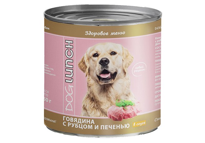 Dog Lunch Консервы ДогЛанч для взрослых собак Говядина с рубцом и печенью в соусе (цена за упаковку) 750г х 6шт