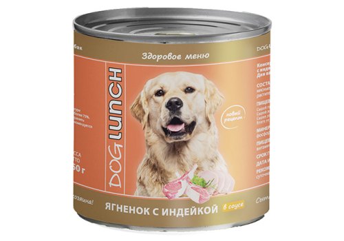 Dog Lunch Консервы ДогЛанч для взрослых собак Ягнёнок с индейкой в соусе (цена за упаковку) 750г х 6шт
