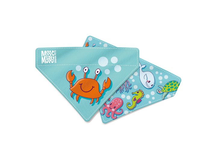 Max & Molly Двухсторонняя бандана Макс и Молли на ошейник для собак Голубой океан S 16x19 см