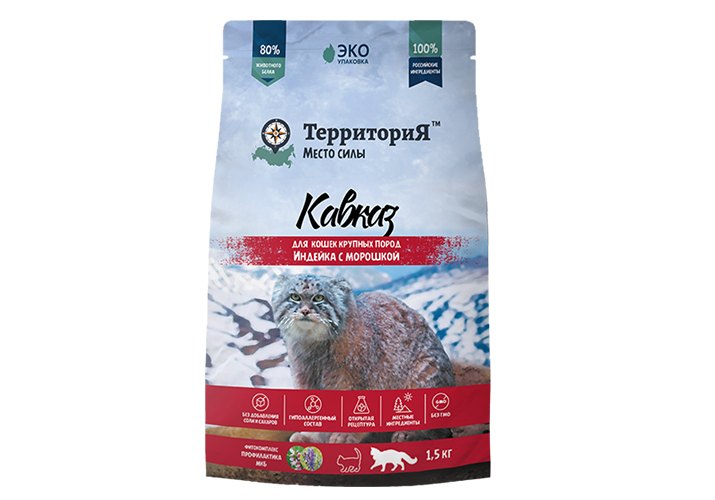 Территория Кавказ Сухой корм для кошек Крупных пород Индейка с морошкой 1,5 кг