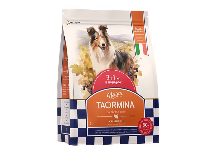 Taormina Southern Forest Adult Сухой Беззерновой корм Таормина для собак с Чувствительным пищевареним с Индейкой 3 кг + 1 кг