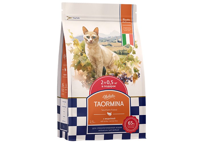 Taormina Southern Forest Sterilized Сухой Беззерновой корм Таормина для Стерилизованных кошек с Индейкой 2 кг + 500 г
