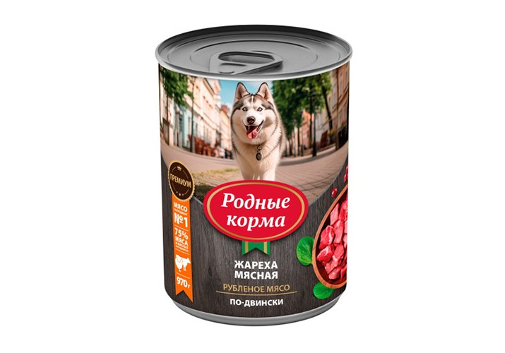 Родные Корма Консервы для собак Жареха мясная по-Двински (цена за упаковку) 970г х 6шт