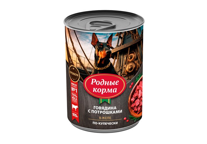 Родные Корма Консервы для собак Говядина с потрошками в желе по-Купечески (цена за упаковку) 970г х 6шт