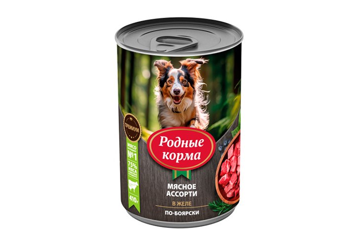 Родные Корма Консервы для собак Мясное ассорти в желе по-Боярски (цена за упаковку) 410г х 6шт