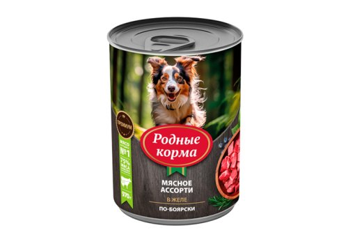 Родные Корма Консервы для собак Мясное ассорти в желе по-Боярски (цена за упаковку) 970г х 6шт