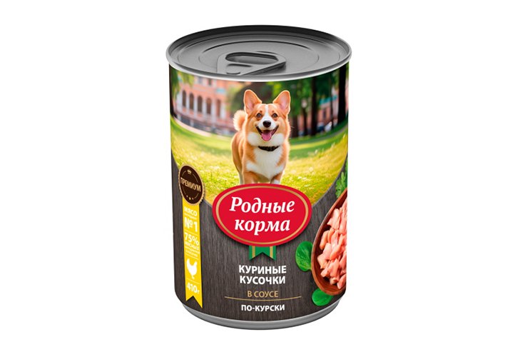 Родные Корма Консервы для собак Куриные кусочки в соусе по-Курски (цена за упаковку) 410г х 6шт