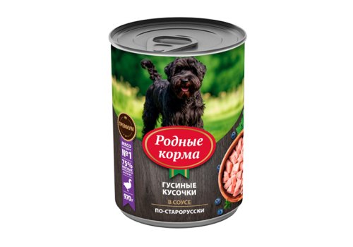 Родные Корма Консервы для собак Гусиные кусочки в соусе по-Старорусски (цена за упаковку) 970г х 6шт