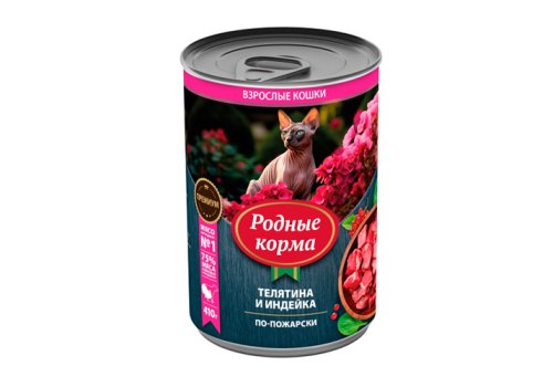 Родные Корма Консервы для кошек Телятина Индейка по-Пожарски (цена за упаковку) 410г х 6шт