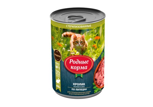 Родные Корма Консервы для кошек с Кроликом кусочки в соусе по-Липецки (цена за упаковку) 410г х 6шт