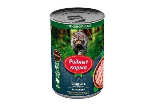 Родные Корма Консервы для кошек с Индейкой кусочки в соусе по-Елецки (цена за упаковку) 410г х 6шт