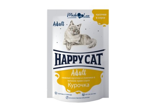 Happy Cat Паучи Хэппи Кэт для кошек Курочка ломтики в яичном соусе (цена за упаковку, Россия) 85г х 24шт