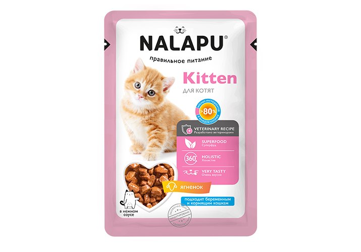 Nalapu Kitten Влажный корм (Консервы-Паучи) Налапу для котят с ягненком соусе (цена за упаковку) 77г х 24шт