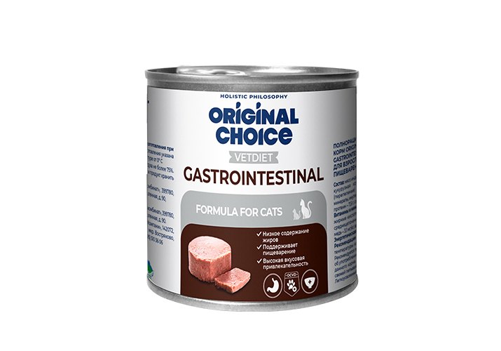 ORIGINAL CHOICE VETDIET Gastrointestinal - это низкое содержание жиров.