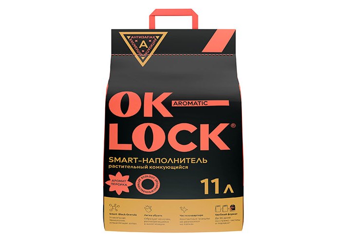 Ok-Lock ПЕРСИК Наполнитель Ок-Лок растительный комкующийся 11 л (4,76 кг)
