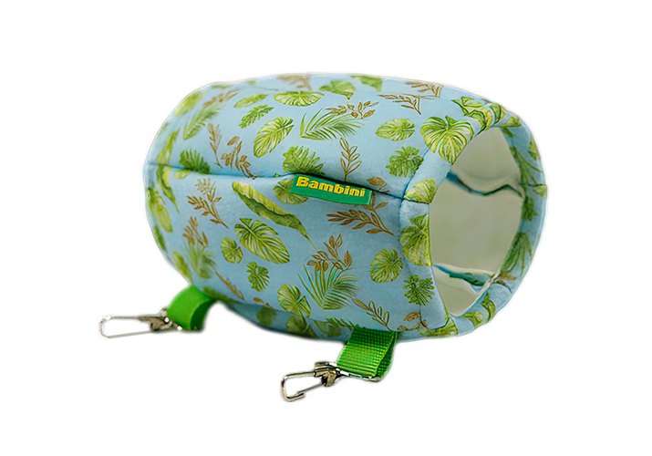 Его удобно подвешивать в клетке при помощи карабинов.