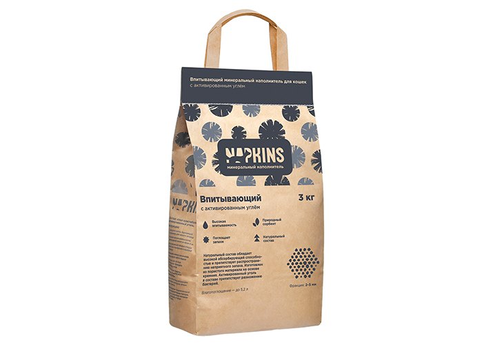 Впитывающий наполнительNapkinsизготовлен из пористого минерала на основе опал кристаболита. Натуральный состав обладает высокой адсорбирующей способностью и препятствует распространению неприятного запаха.