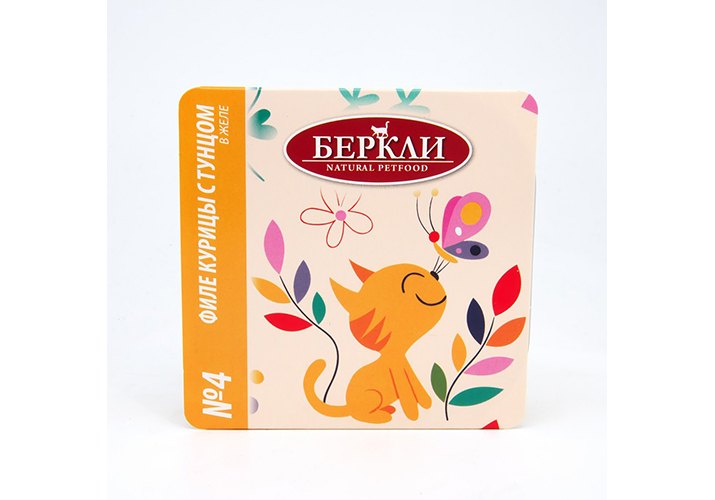 Berkley Влажный корм (Ламистеры) Беркли №4 для кошек всех стадий жизни Филе курицы с тунцом в желе (цена за упаковку) 100г х 14шт