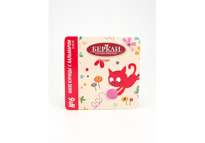 Berkley Влажный корм (Ламистеры) Беркли №6 для кошек всех стадий жизни Филе курицы с кальмаром в желе (цена за упаковку) 100г х 14шт