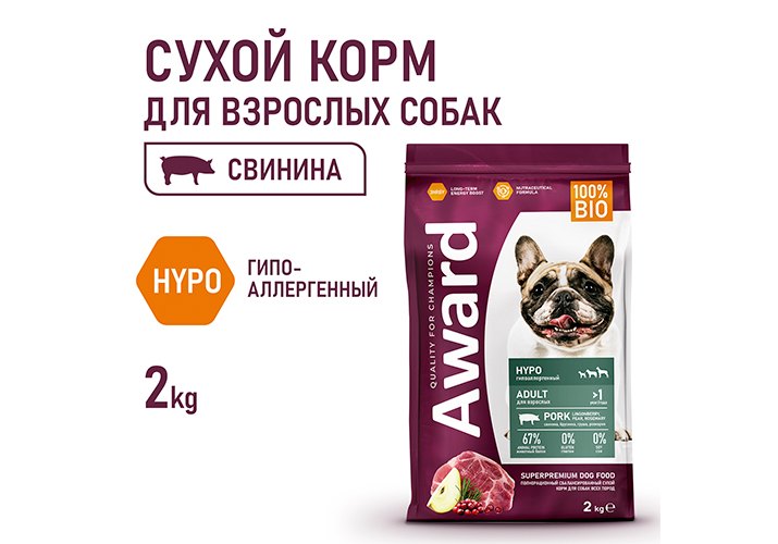 Award All Breed Adult Hypo Сухой гипоаллергенный корм Авард для взрослых собак всех пород Свинина брусника груша розмарин 2 кг