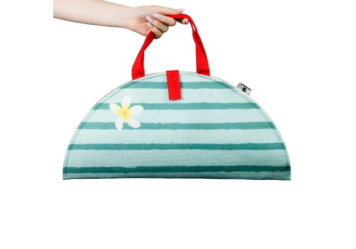 Коврик-сумка выполнен в практичном виде с удобными ручками.
