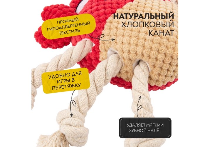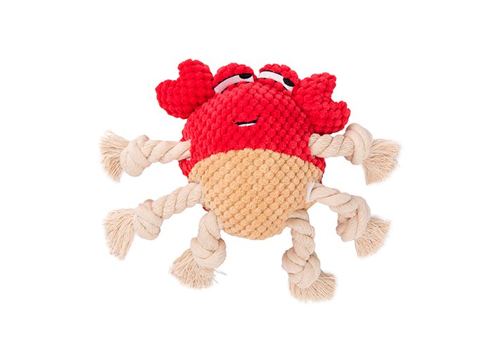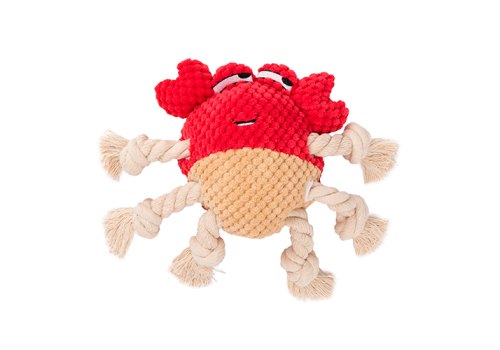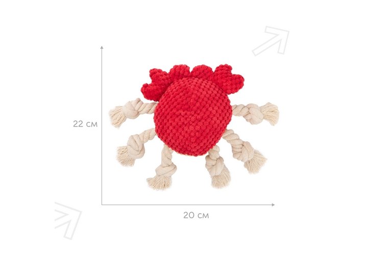 Яркий краб с тремя натуральными хлопковыми канатами станет увлекательным развлечением для вашего питомца.