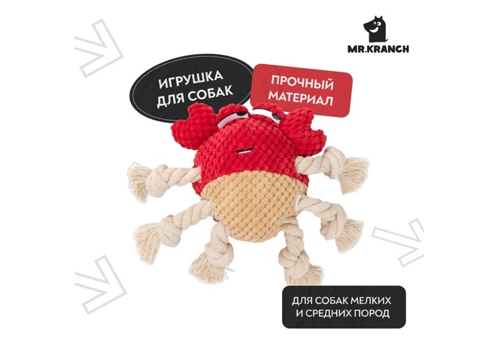 Игрушка Mr.Kranch для собак Краб плюшевая с канатиками и пищалкой.
