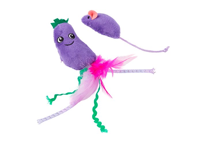 Mr.Kranch Игрушка Мистер Кранч для кошек плюшевая с кошачьей мятой и перышками Баклажанчик и Мышка фиолетовая 19 см