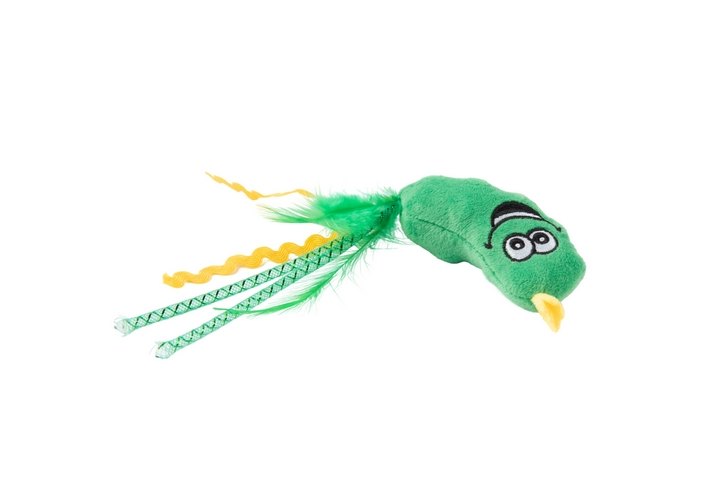 Mr.Kranch Игрушка Мистер Кранч для кошек плюшевая с кошачьей мятой и перышками Огурчик зеленая 17 см