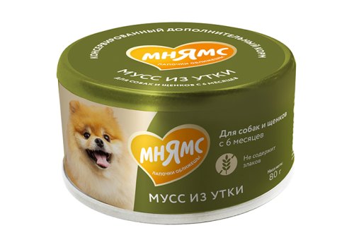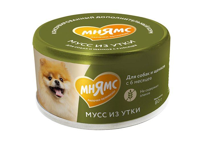 «Мнямс» консервированный дополнительный корм для собак и щенков старше 6 месяцев «мусс» из утки гарантирует, что ваш питомец получит только качественный и вкусный продукт, который прекрасно разнообразит рацион любимца, поддержит его здоровье и жизненную энергию.