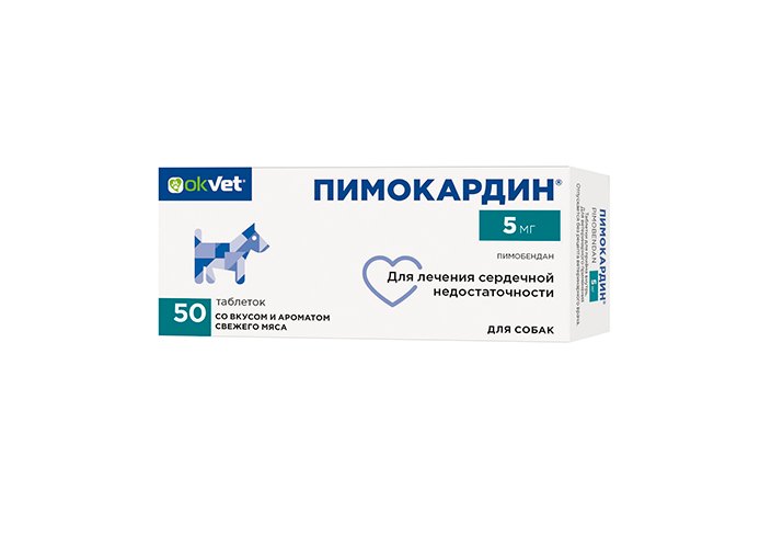 Okvet ПИМОКАРДИН Таблетки Оквет для лечения Сердечной недостаточности у собак со вкусом и ароматом свежего мяса 5 мг 50 таб