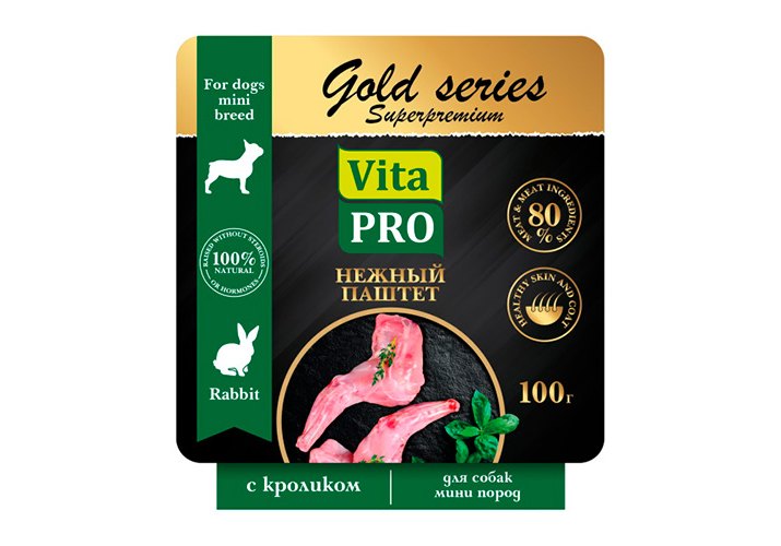 Vita Pro Gold series Superpremium Влажный корм Паштет Вита Про c Кроликом для собак Мини пород (цена за упаковку) 100г х 14шт