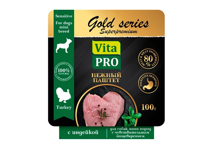 Vita Pro Gold series Superpremium Влажный корм Паштет Вита Про c Индейкой для собак мини пород с Чувствительным пищеварением (цена за упаковку) 100г х 14шт