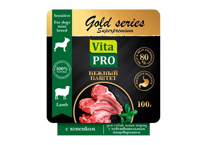 Vita Pro Gold series Superpremium Влажный корм Паштет Вита Про c Ягнёнком для собак мини пород с Чувствительным пищеварением (цена за упаковку) 100г х 14шт