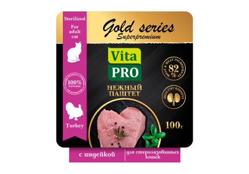 Vita Pro Gold series Superpremium Влажный корм Паштет Вита Про c Индейкой для Стерилизованных кошек (цена за упаковку) 100г х 14шт