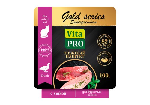 Vita Pro Gold series Superpremium Влажный корм Паштет Вита Про c Уткой для взрослых кошек (цена за упаковку) 100г х 14шт