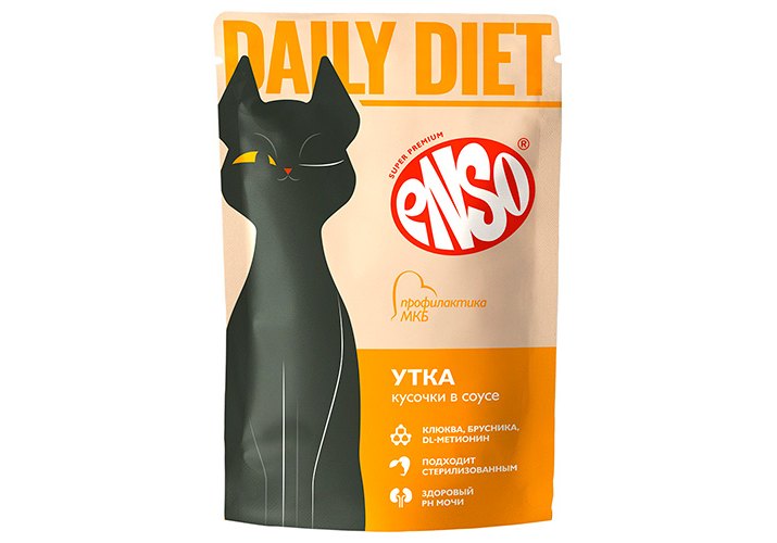 ENSO® DAILY DIET — функциональные профилактические влажные рационы класса холистик для ежедневного поддержания здоровья кошек без курицы, сои, пшеничного глютена и ГМО.