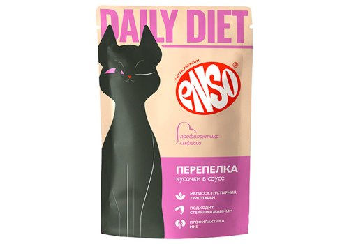 ENSO® DAILY DIET Полнорационный влажный профилактический корм для взрослых кошек для профилактики стресса, кусочки с перепелкой в соусе.