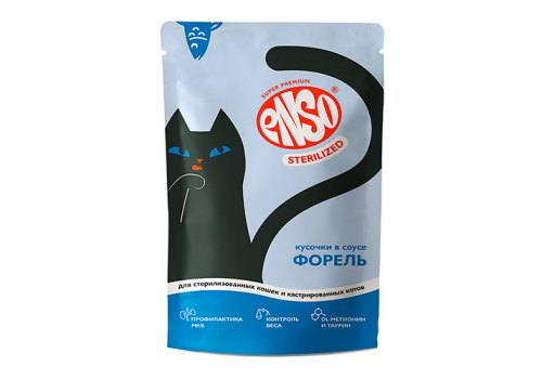 Enso Влажный корм Энсо Паучи для взрослых стерилизованных кошек Форель Кусочки в соусе (цена за упаковку) 85г х 24шт