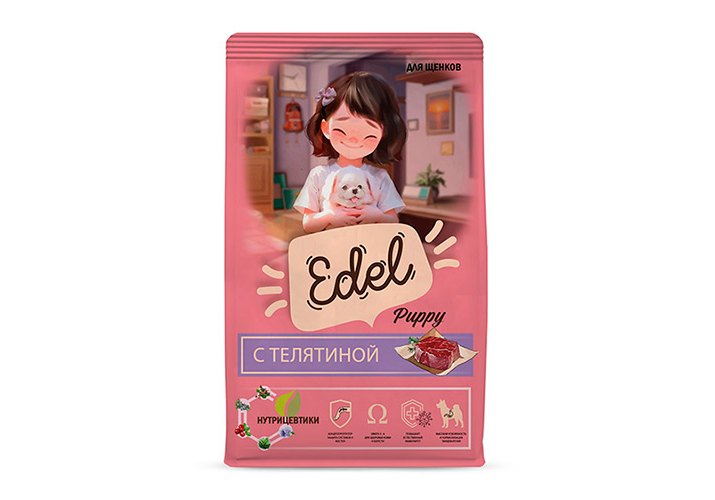 Полнорационный сухой корм Edel для щенков с телятиной создан специально для растущих питомцев.