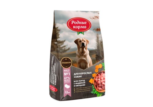 Родные Корма Сухой корм для взрослых собак всех пород с Индейкой и овощами 12 кг