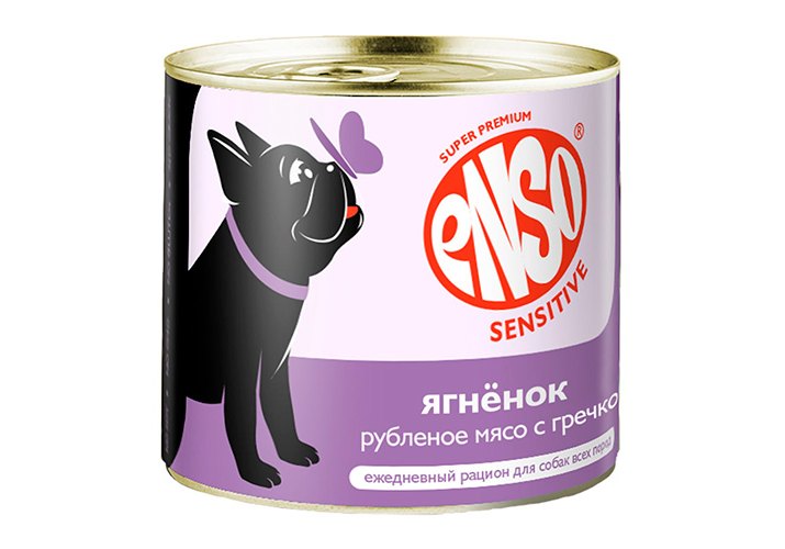 Enso Sensitive Консервы Энсо для взрослых собак поддержание здоровья кожи и красоты шерсти Рубленое мясо ягненка с гречкой (цена за упаковку) 190г х 12шт