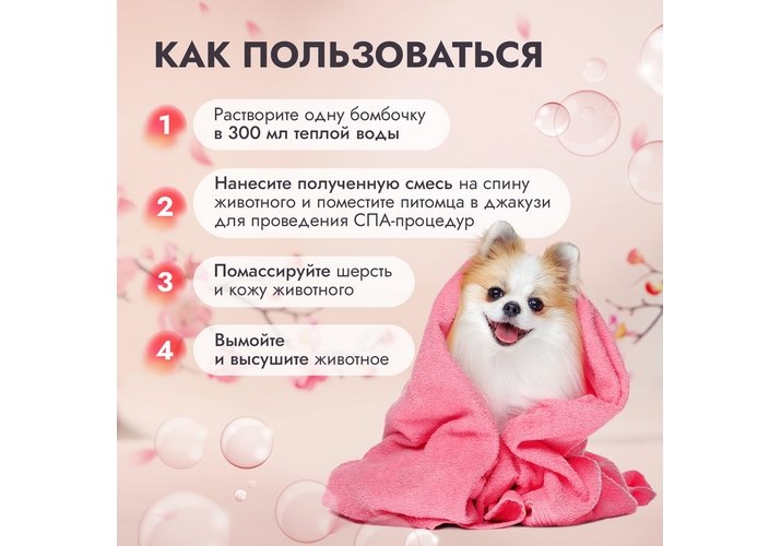 Смойте и высушите животное. На мелкое животное достаточно 1/2 бомбочки, на крупное - целую.