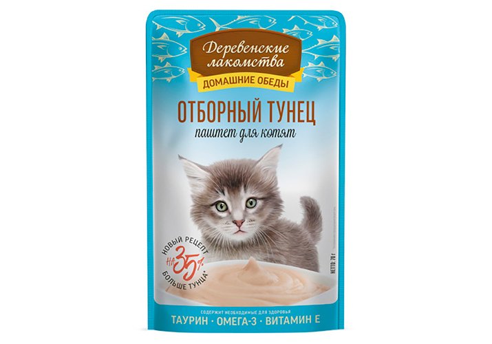 Деревенские лакомства Паучи Паштет для Котят Отборный Тунец (цена за упаковку) 70г х 12шт
