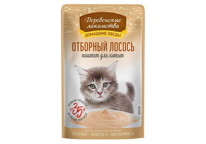 Деревенские лакомства Паучи Паштет для Котят Отборный Лосось (цена за упаковку) 70г х 12шт