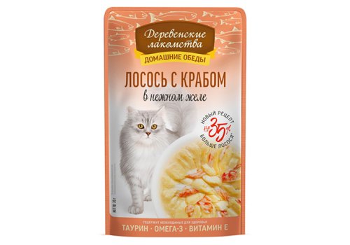 Деревенские лакомства Домашние обеды Паучи для кошек Лосось с Крабом в нежном желе (цена за упаковку) 70г х 12шт