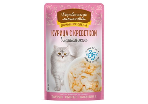 Деревенские лакомства Домашние обеды Паучи для кошек Курица с Креветкой в нежном желе (цена за упаковку) 70г х 12шт