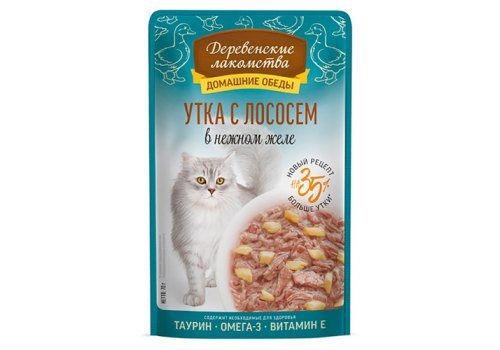 Деревенские лакомства Домашние обеды Паучи для кошек Утка с Лососем в нежном желе (цена за упаковку) 70г х 12шт